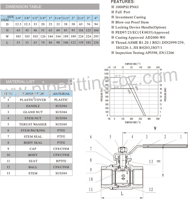Stainless steel casting parts BALL VALVES 304/316 2pc Ball Valve