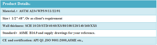 Alloy steel elbow pipe fittings ASTM A234 WP5