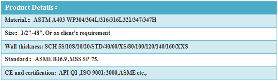 Stainless steel pipe fittings elbow butt welded pipe fittings 304/304L/316/316L