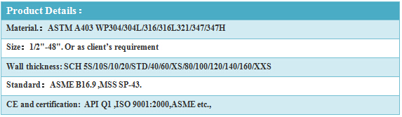 Stainless steel stub end butt welded pipe fittings 304/304L/316/316L
